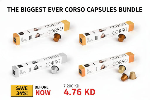 Original price 7.200 KDOriginal price 7.200 KD - Original price 7.200 KDOriginal price 7.200 KDCurrent price 4.760 KD4.760 KD - 4.760 KDCurrent price 4.760 KDCORSO Premium Coffee Capsules – Signature Blend Collection (4-Pack) Nespresso® Compatible Aluminum Capsules Experience the full range of Corso’s ex...