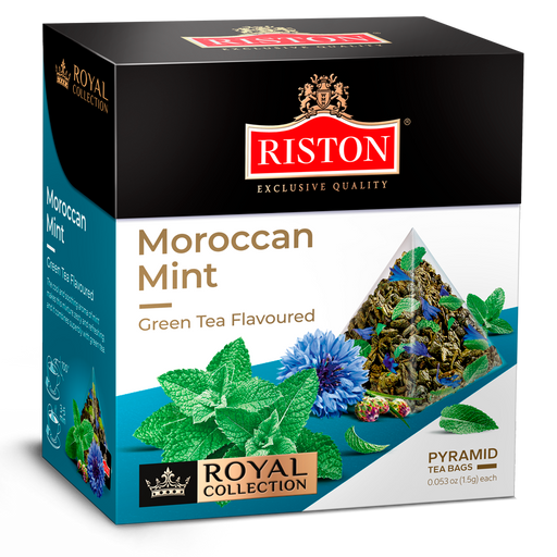 Riston - Moroccan Mint Green Tea, Flavoured, 18 Pyramid Tea Bags × 1.5 g