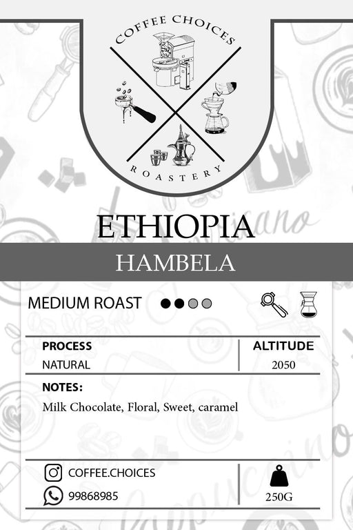 Original price 5.500 KD - Original price 5.500 KDOriginal price5.500 KD5.500 KD - 5.500 KDCurrent price 5.500 KD| /Coffee Choices - Ethiopia Hambela Process : Natural Altitude : 2050 Medium Roast Notes : Milk chocolate, Floral, Sweet, caramel For Espr...